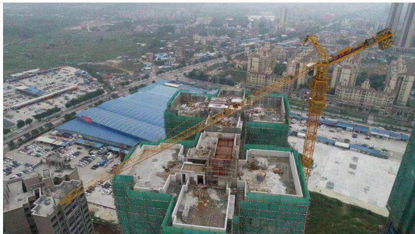 深圳市兆鑫匯金廣場在屋面層安裝一臺(tái)QTDS80塔機(jī)進(jìn)行材料吊載