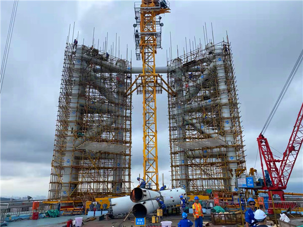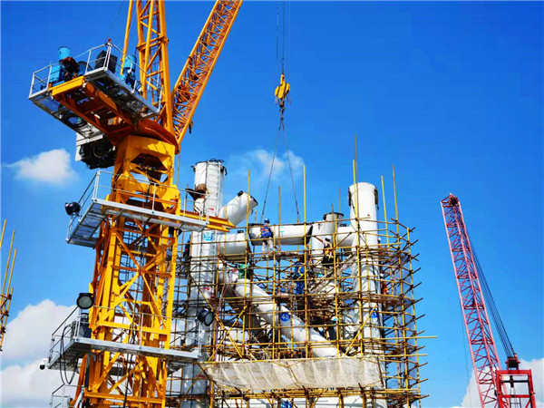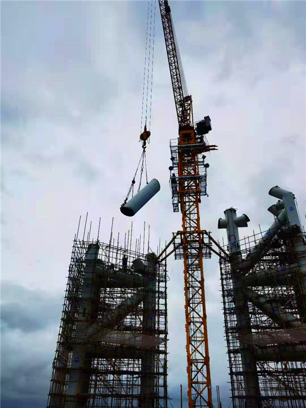 操作架及防護棚安裝:利用5T屋面吊吊運操作架及防護棚材料,安裝操作架及防護棚。