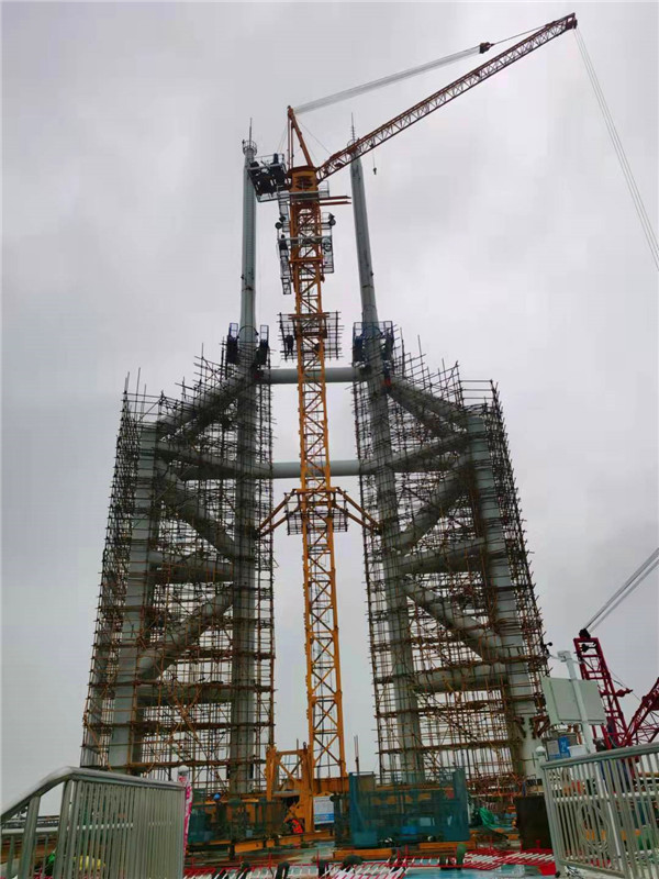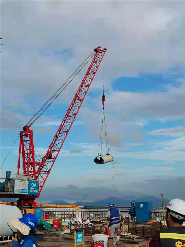 屋面吊安裝:利用消防電梯及人工搬運安裝一臺2T屋面吊,再用2T屋面吊安裝一臺5T屋面吊,再用5T屋面吊安裝一臺12T屋面吊。